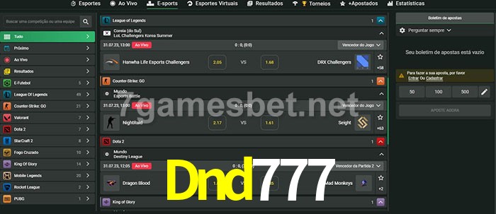 A aposta Dnd777 oferece aos jogadores a experiência mais conveniente de apostas em eSports!